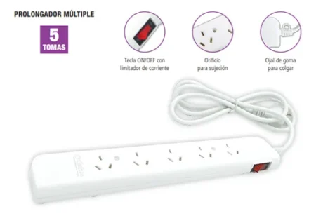 -20% Off$19.481El precio original era: $19.481.$15.584El precio actual es: $15.584.Características del producto Características principales Marca TBCin Modelo EV-P5 Cantidad de tomas 5 Largo del cable 1,5 m Registros de producto Organismo de certificación (OCP) IQC S.A. Otros Frecuencia 50Hz/60Hz Potencia 2,3 kW Corriente máxima 10 A Con USB No Con protección contra sobrecarga Sí Con reducción de ruido eléctrico […]
