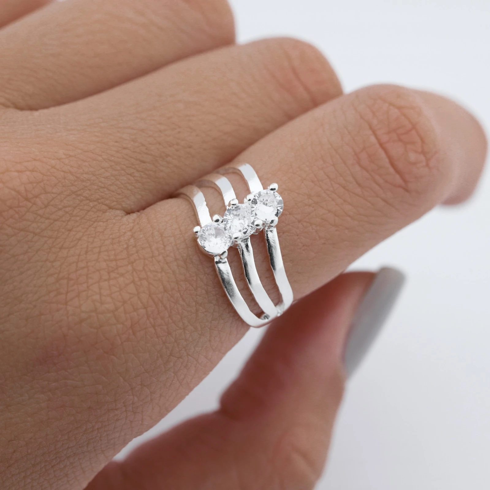 Deslumbra con este deslumbrante anillo de cristales. Elaborado con plata de la más alta calidad, cada cristal refleja la luz de manera cautivadora, creando un juego de brillos y destellos. Un accesorio elegante y moderno que aportará un toque de glamour a cualquier atuendo.